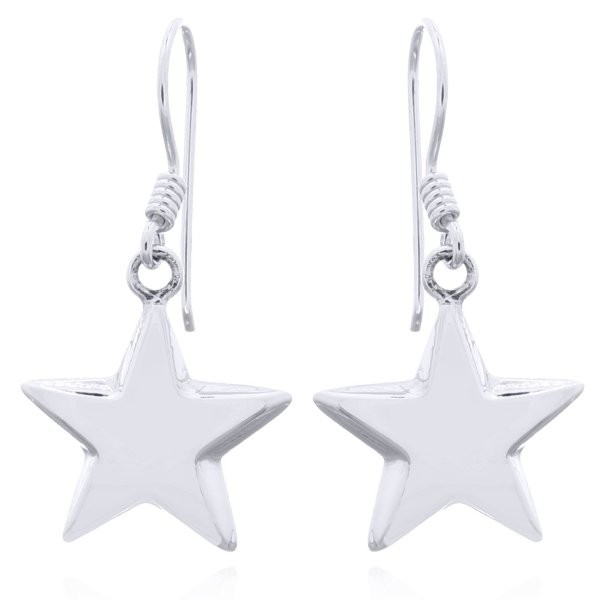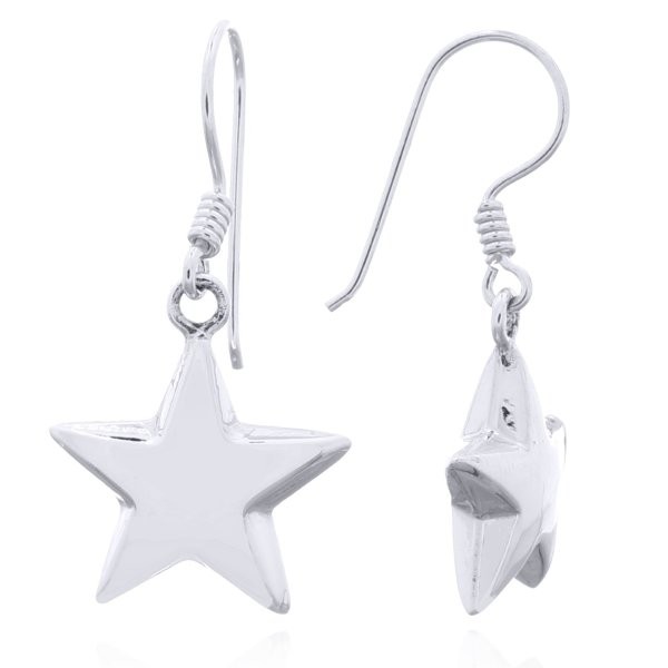 Superbly puffed this pair of star earrings twinkle and shine brightly on a woman’s ear adding the night sky magic to her outfit. These stars are of the right size and perfectly shaped showing off their 5 points when dangling along. On hooks and made with Sterling Silver these earrings are always high in demand.