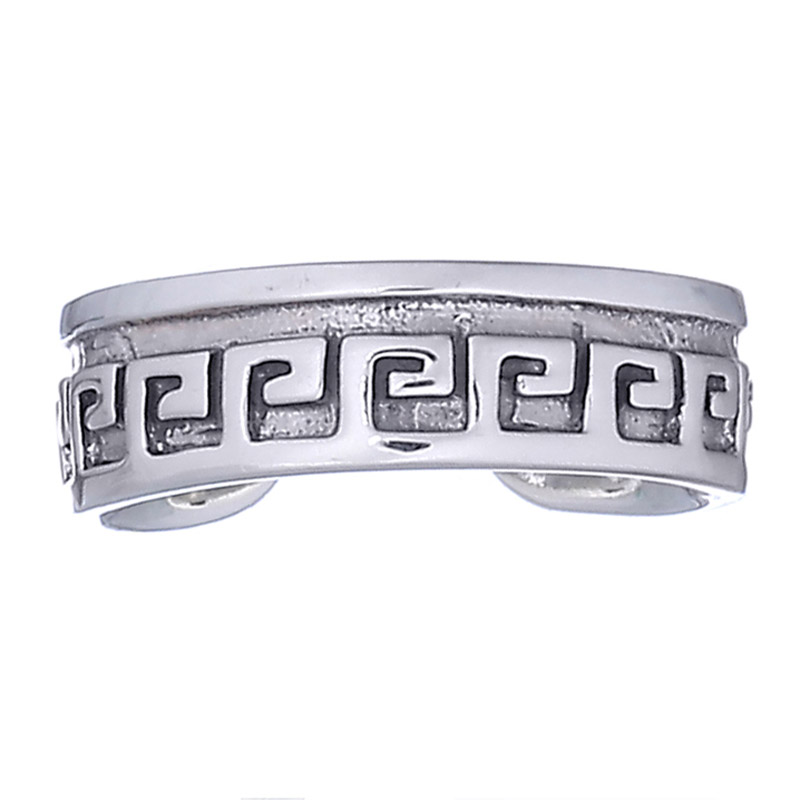 Antiqued Greek fluted geometric pattern Sterling Silver toe ring polished. Stylish and cute this toe ring will put some chic on the foot. Adjustable in size.