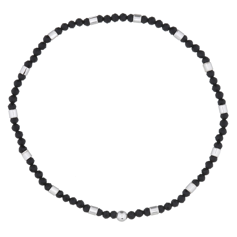 Elevate your selection with a chic bracelet combining sterling silver tubes and striking black agate. This piece brings a modern edge to any ensemble. Benefit from our wholesale prices.