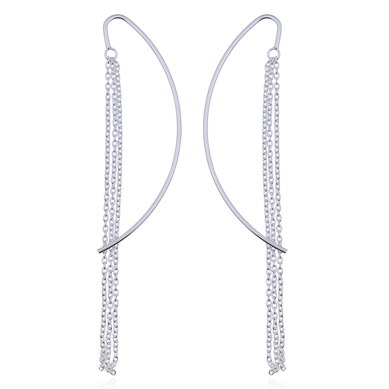 Pull through curved wire tassel chains swaying graciously in this silver round bent wire thread earrings.