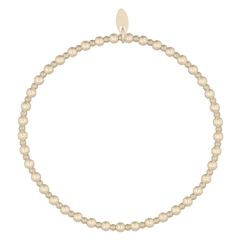 Two-tone stretchable bracelet made in 2mm yellow gold plated beads and 3mm 925 sterling beads in between. Minimum length: 17 cm.