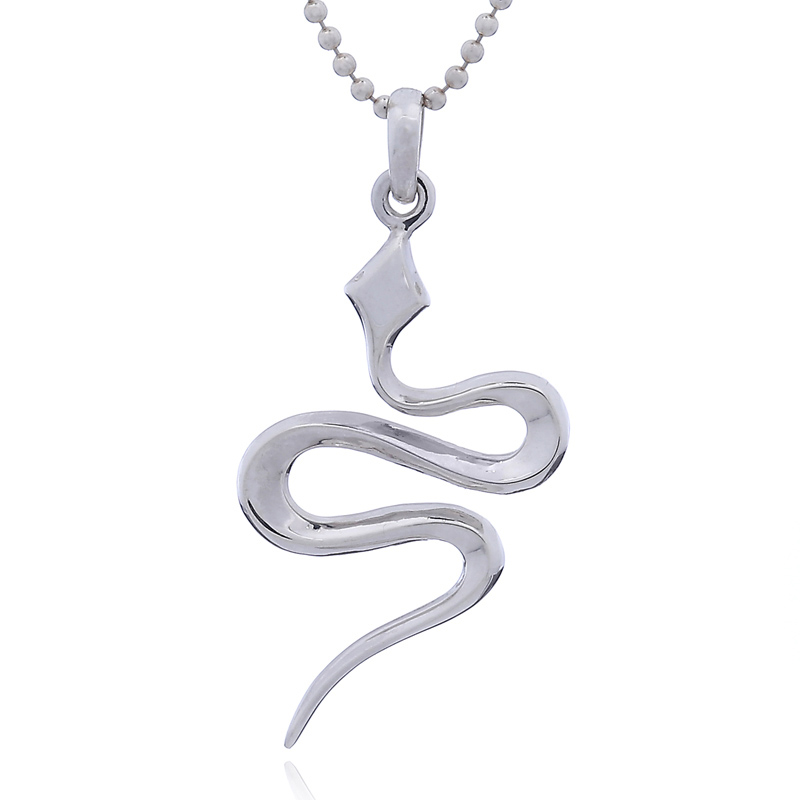 This Sterling Silver snake pendant depicts a snake in movement. The shape is accentuated by the beveled shape which breaks perfectly the light when it hits this highly polished silver animal.