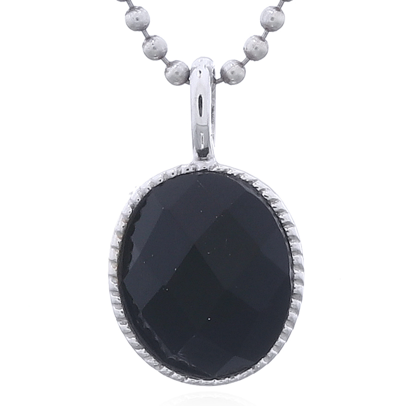Crafted with genuine black agate in an faceted oval shape, this 925 sterling silver pendant boasts a smooth serrated bezel setting. Perfect for retailers offering unique, nature-inspired jewelry that blends deep color with elegant design.
