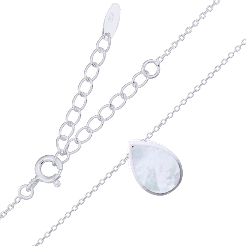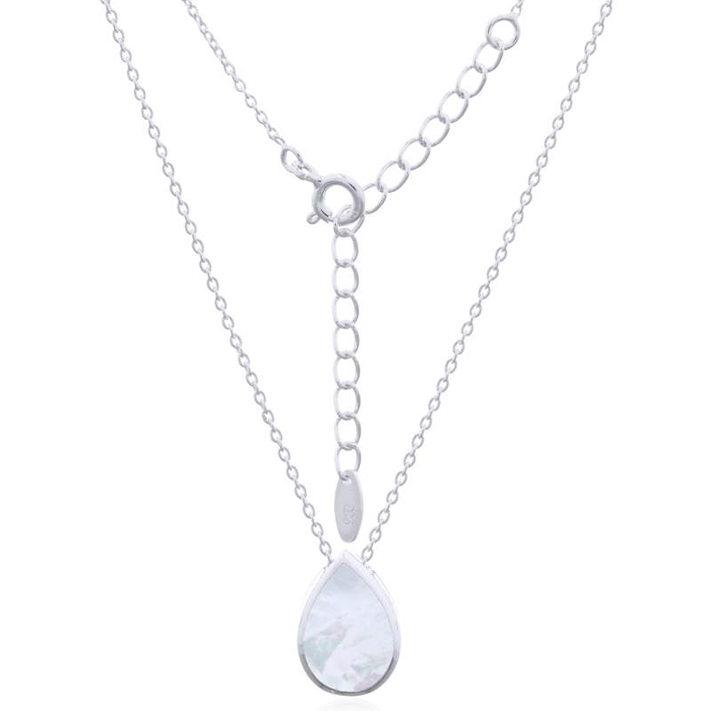 Elevate your inventory with this stylish 925 sterling silver cable chain necklace with Mother of Pearl, highlighted by a rain drop pendant inlaid with radiant MOP. Ideal for retailers offering contemporary accessories that blend simplicity with refined, natural elegance. Charm Size is 10 x 13 x 5 mm.