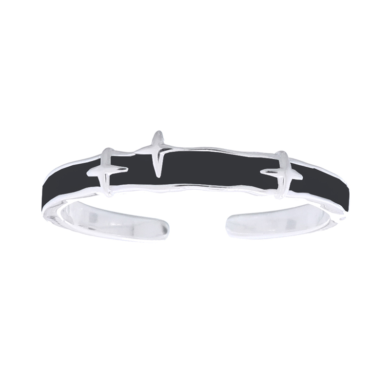 Stylish 925 Sterling Silver Open Ring with Black Enamel Stars