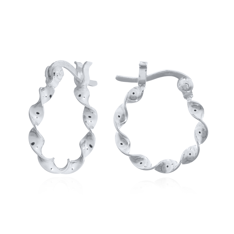 These elegant hoop earrings feature a twisted flat wire design crafted from 925 sterling silver. Their contemporary style and lightweight feel make them ideal for retailers offering versatile, fashion-forward pieces perfect for everyday or event wear.