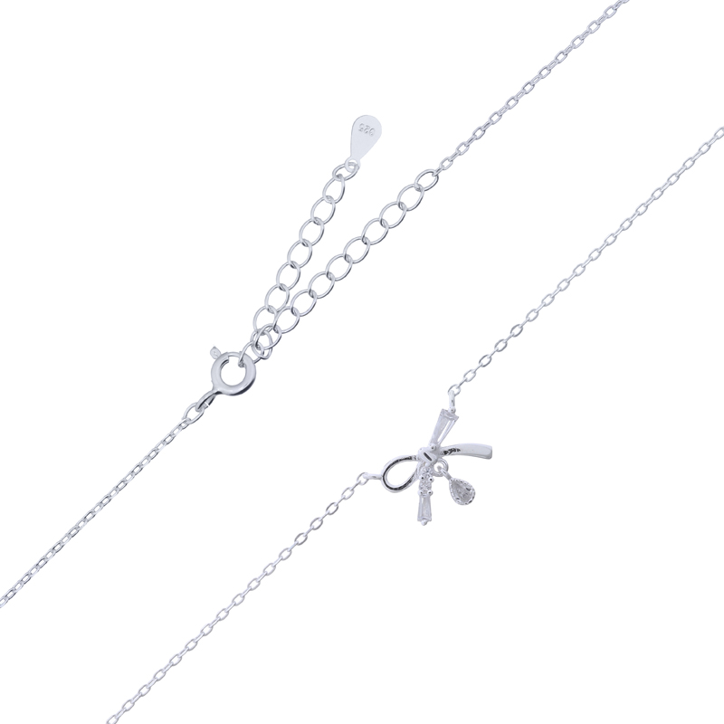 This stylish bow charm embellished with cubic zirconia adds a playful yet elegant touch to any chain necklace. It’s a perfect choice for customers looking for charming details that enhance their personal style.