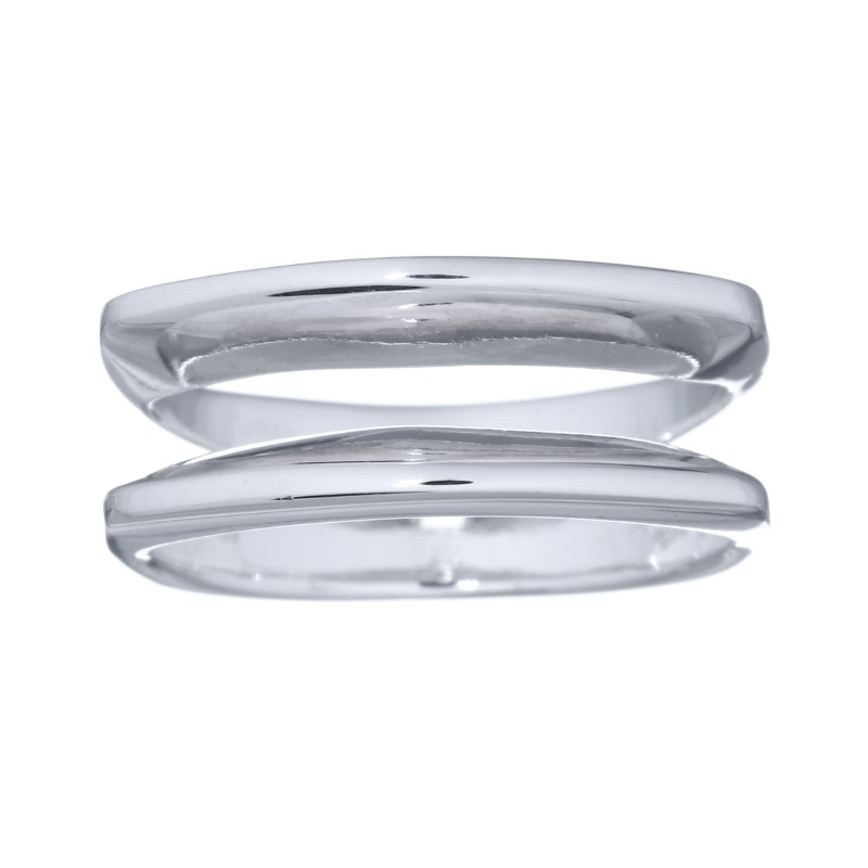 The flatness of the two fine shaped smoothed angular shapes create the delicate style of this Unique Planet Silver Design ring. Following the roundness of the finger at center displaying straight sides and fashioned with high polish finish Sterling Silver shows a great embellishing effect. The illusion that two rings are on the finger is wonderfully completed. This is an attractive and stylish ring for daily wear with a smart flair.