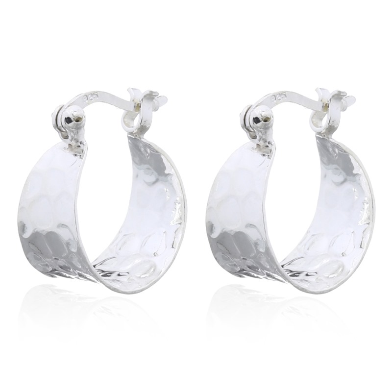 These tapered hammered sterling silver hoop earrings offer a modern and dynamic design, perfect for customers seeking contemporary and stylish pieces. Their tapered shape and hammered texture add a unique touch. Benefit from products manufactured under strict quality control measures.