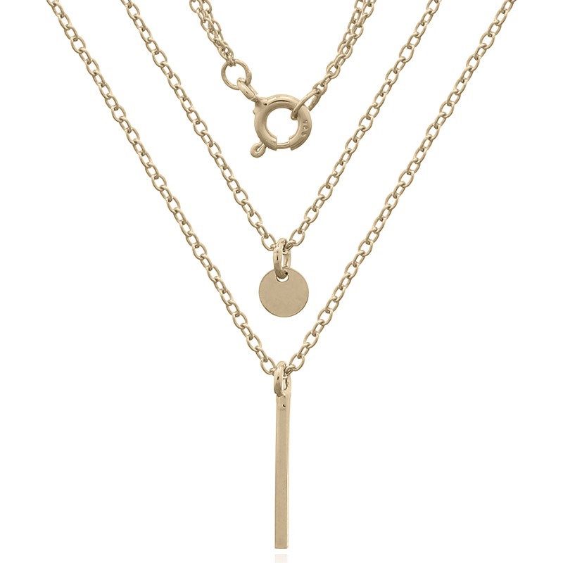 Featuring a thin vertical bar in yellow gold plating, this necklace offers a modern and minimalist design. Perfect for enhancing your collection with sleek pieces. Benefit from our factory-direct pricing for exceptional quality.