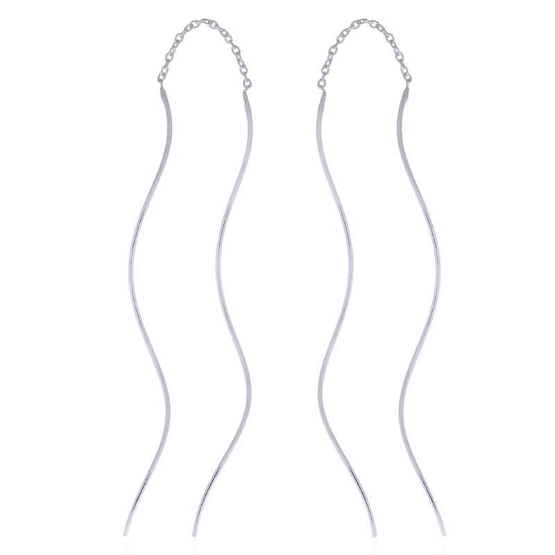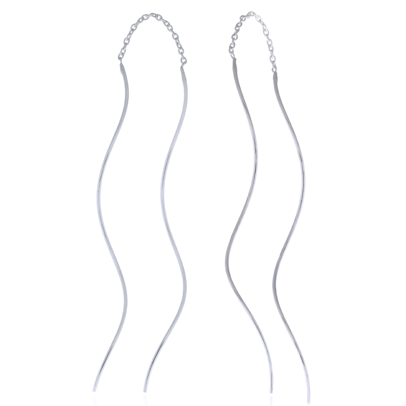 Threader Earrings Minimalist design captivate with their airy charm. These exquisite earrings feature gorgeously long wavy sticks that gracefully thread through your earlobes, creating a stunning and on-trend look. Crafted with precision and elegance, these threader earrings are perfect for those seeking a sophisticated, yet understated accessory. Elevate your style effortlessly with our timeless threader earrings, the epitome of minimalist elegance.