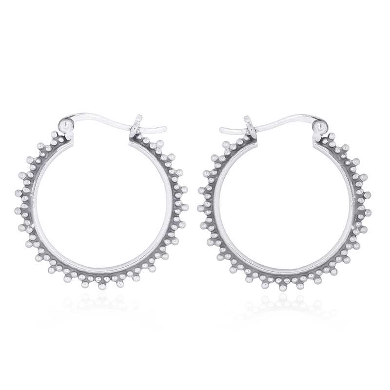 A unique choice for your collection, these larger hoop earrings feature three beaded florals, creating a luxurious look. Perfect for customers wanting to make a statement, their eye-catching design ensures they will stand out in any jewelry display.