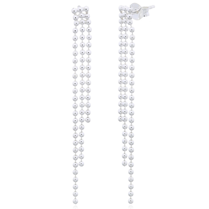 Featuring three layers of sphere chains, these stud earrings offer a bold and textured look. Retailers can attract customers looking for statement pieces that enhance their jewelry collection with dynamic and eye-catching designs.
