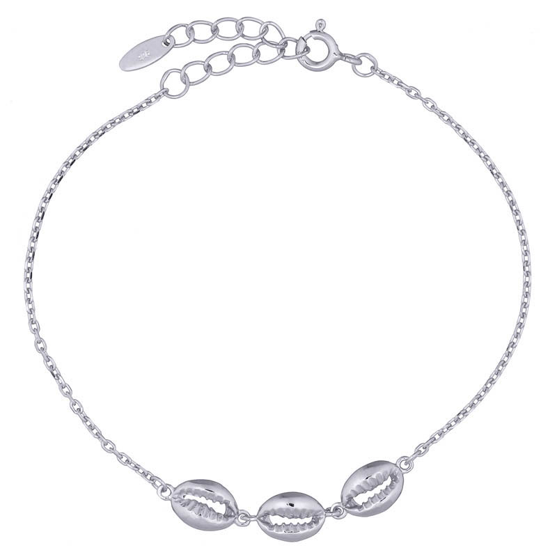 This sterling silver bracelet with three cowrie shells adds a delicate coastal touch to any collection. Great for retailers looking to offer minimalistic, nature-inspired jewelry.