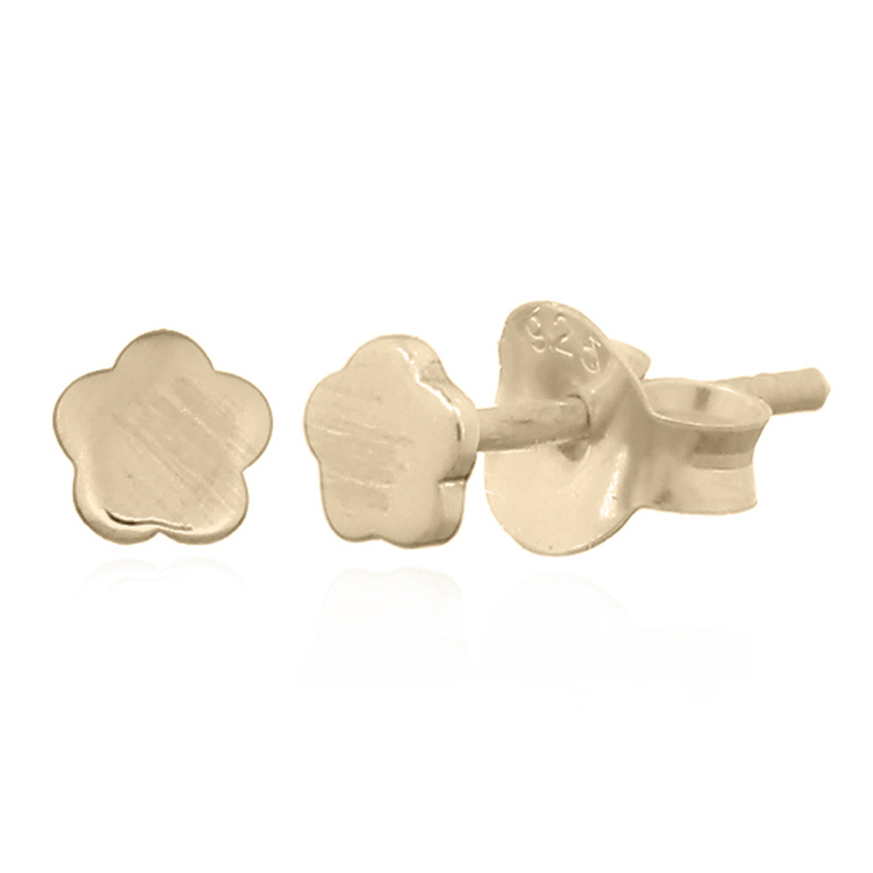 Plain Flower Stud earrings by 925 silver and flash yellow gold plated.
