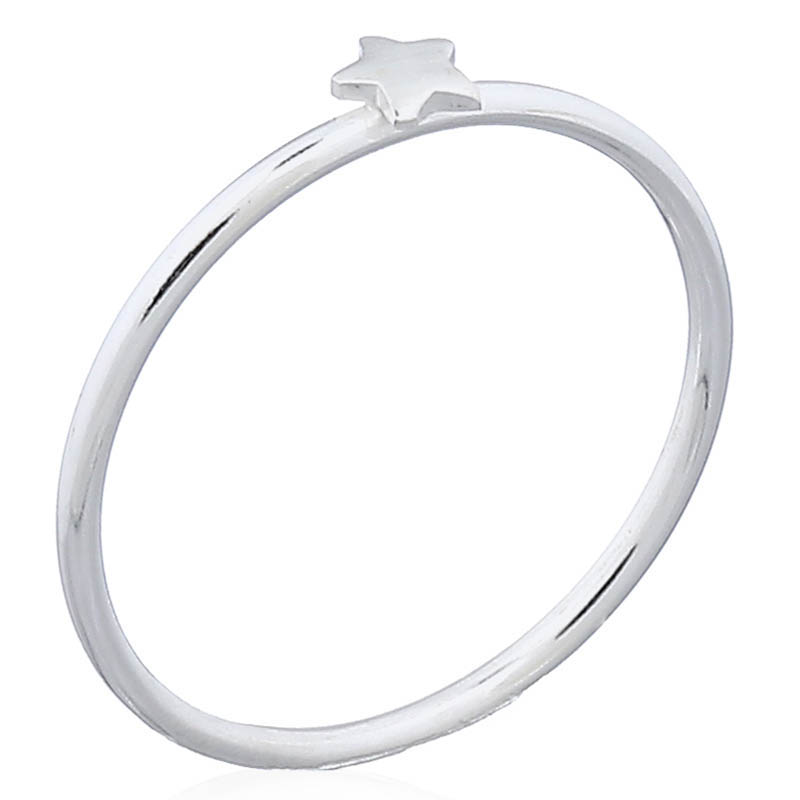A tiny twinkle star graces this plain silver stack ring, offering a delicate, celestial touch. Ideal for retailers looking to offer minimalistic jewelry with symbolic meaning for everyday wear.