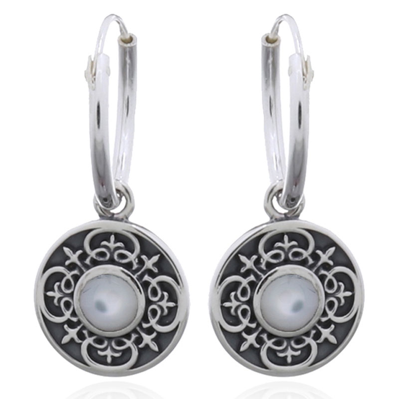 These beautifully crafted hoop earrings feature a tribal Celtic cross and elegant mother of pearl. Their unique design makes them a standout piece for retailers looking to attract customers who appreciate both beauty and cultural significance in jewelry.