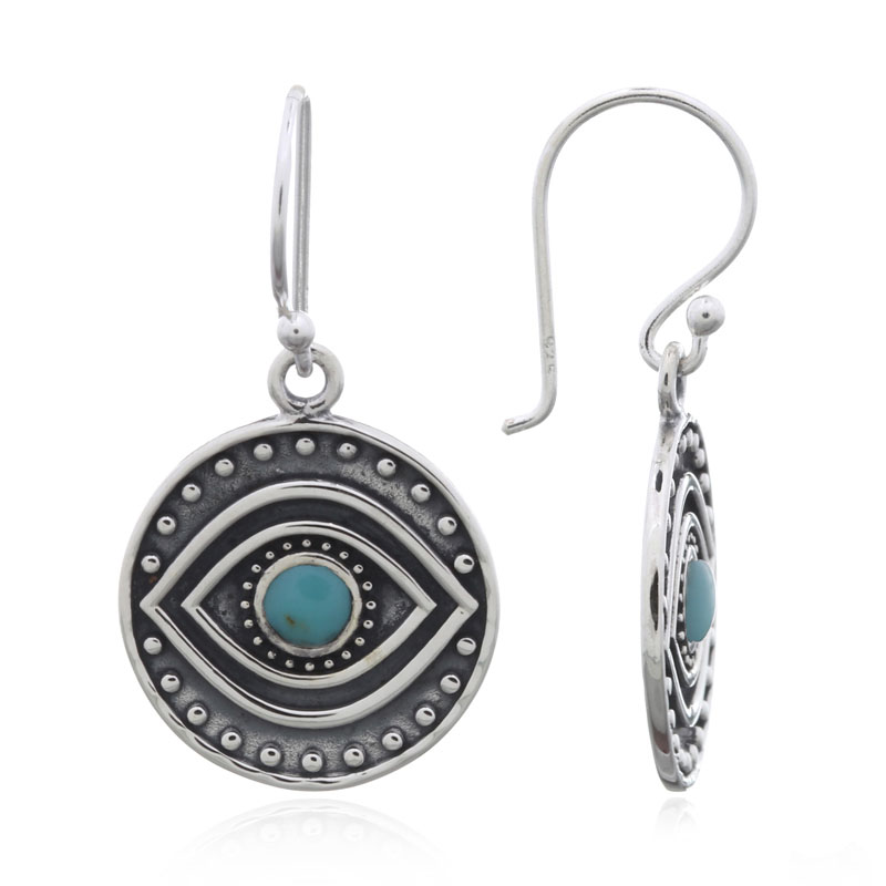 Featuring a striking tribal evil eye design with vibrant green stones, these dangle earrings are perfect for adding a unique flair to any collection. Their combination of style and symbolism makes them appealing to customers interested in cultural jewelry pieces.