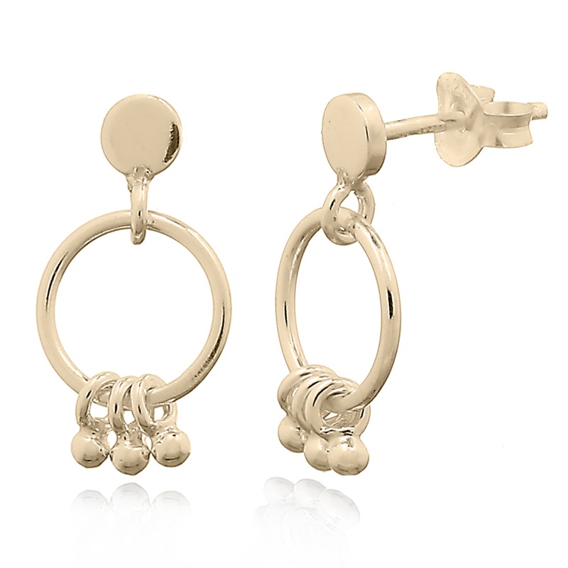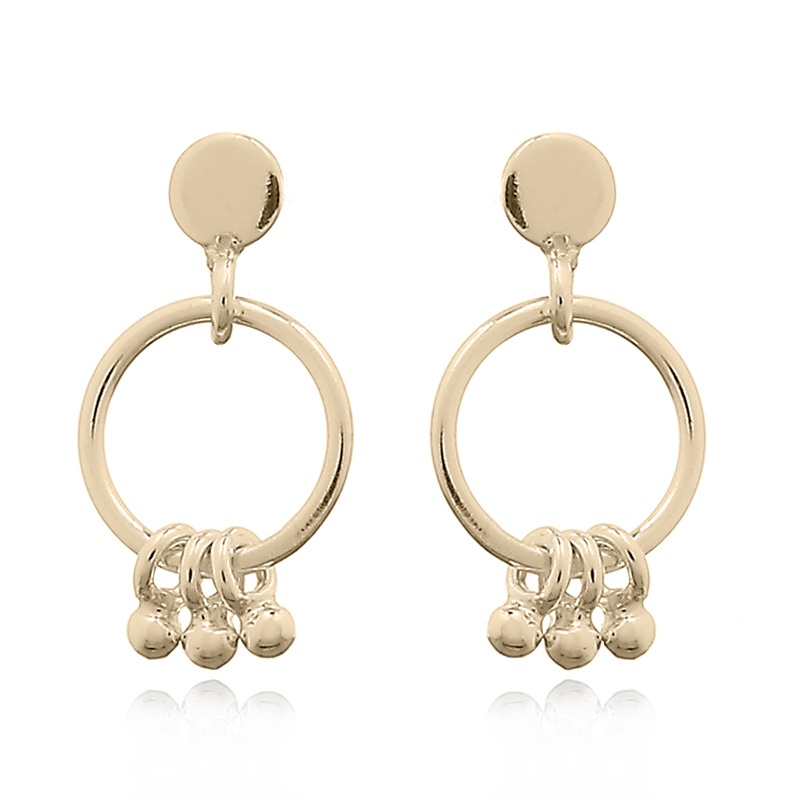 Triple gold bead hooks circle stud earrings offer a unique, trendy look with their modern design. Perfect for fashion-forward customers, these earrings are a great addition to your inventory. Benefit from our factory-direct pricing.