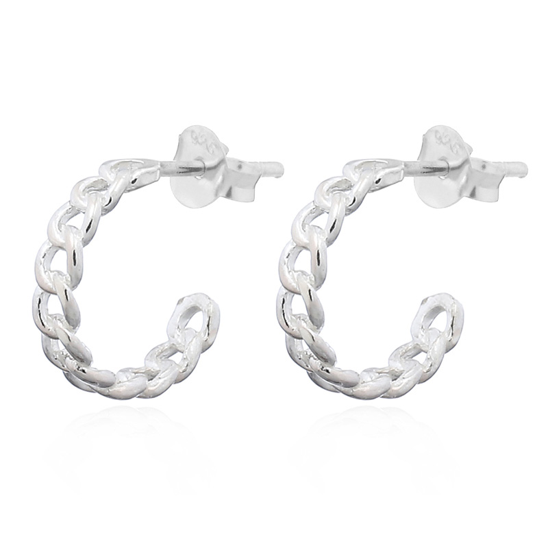 Highly polished Silver curve is accentuated by twined link. That is one of the beautiful pairs to feminine.