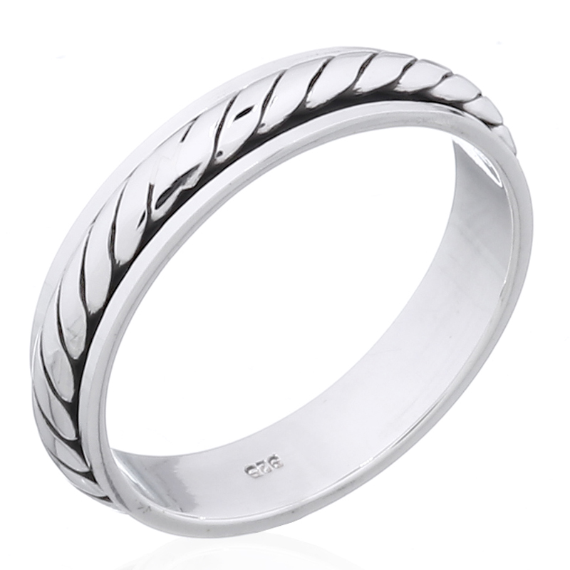 Elevate your jewelry collection with this intricately designed band. The twisted rope texture adds a classic touch while the spinner feature offers a unique sensory experience, making it perfect for modern men who appreciate both style and functionality.