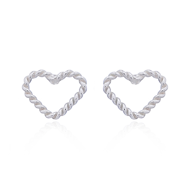 Tiny open hearts made in twisted silver wires very minimalist and simple for ladies who likes more basic stud earrings.