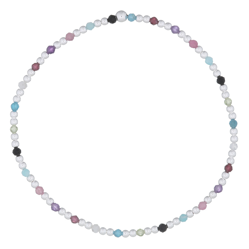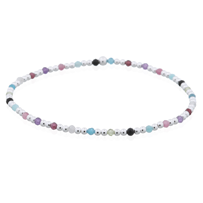 Featuring two silver spheres as spacers, this stretchable bracelet includes a mix of stones that adds a playful touch to any outfit. Retailers can market it as an essential accessory for those who enjoy vibrant, eclectic styles that stand out.