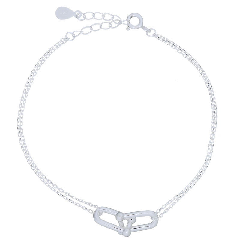 This interlocked U-shaped chain bracelet in 925 silver adds a modern, bold touch to any wrist. Retailers can offer it as a trendy, statement piece, ideal for layering or wearing solo.
