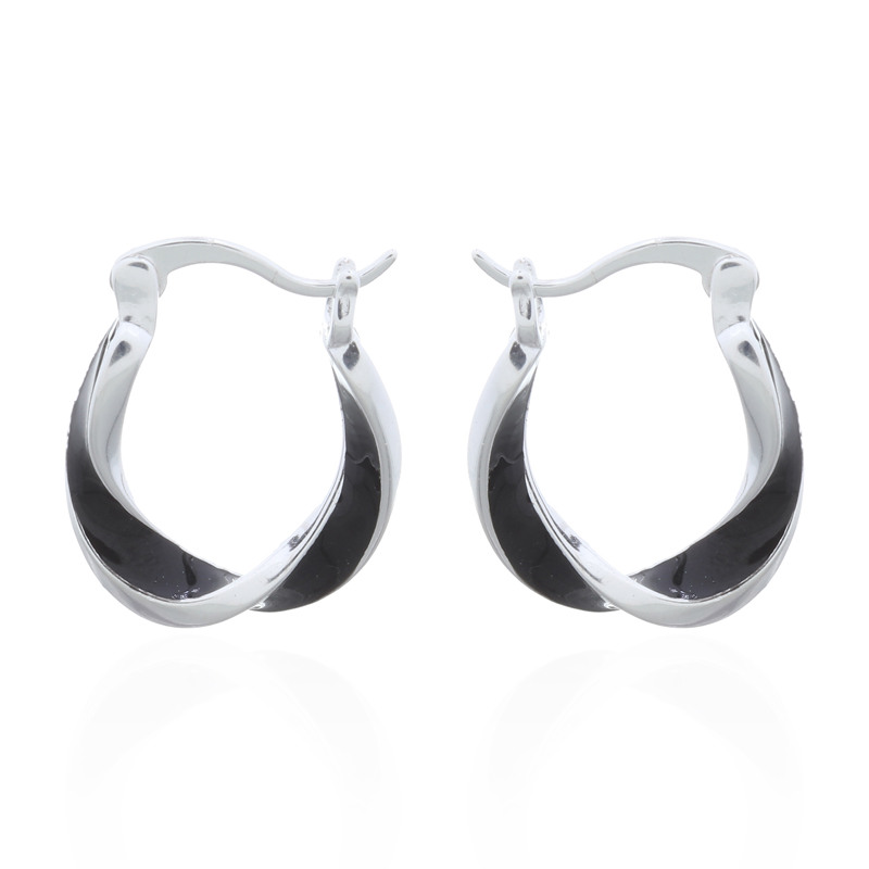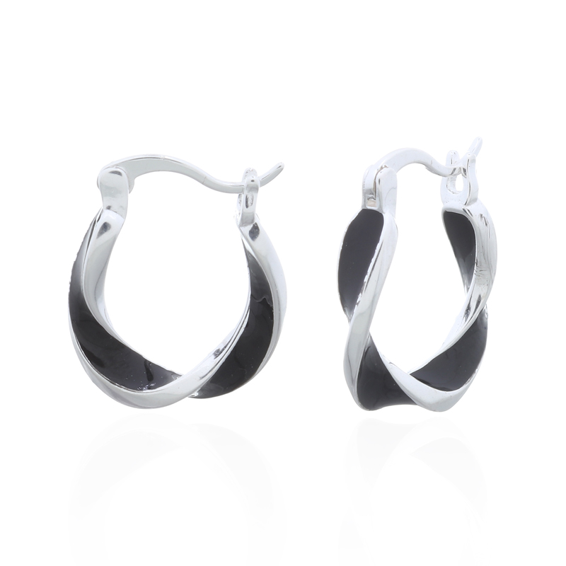 These U-shaped twisted hoop earrings, accented with sleek black enamel, bring a stylish twist to classic hoop designs. Ideal for trendsetters, they add a chic touch to any outfit. Attract attention with this unique design and expand your jewelry collection!