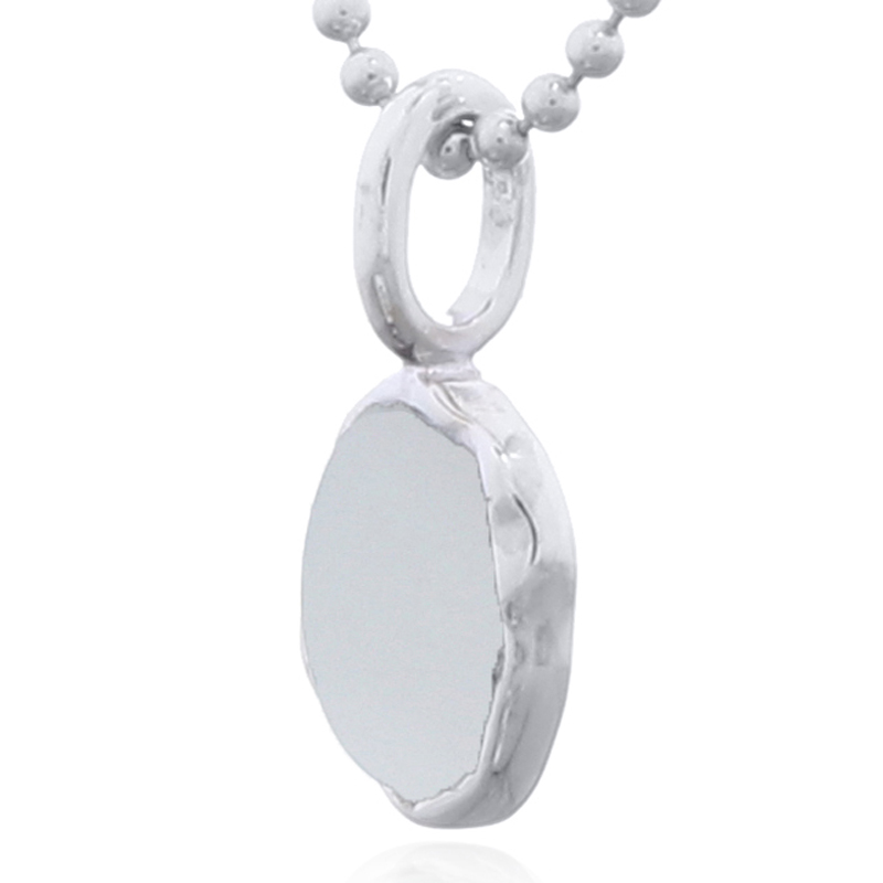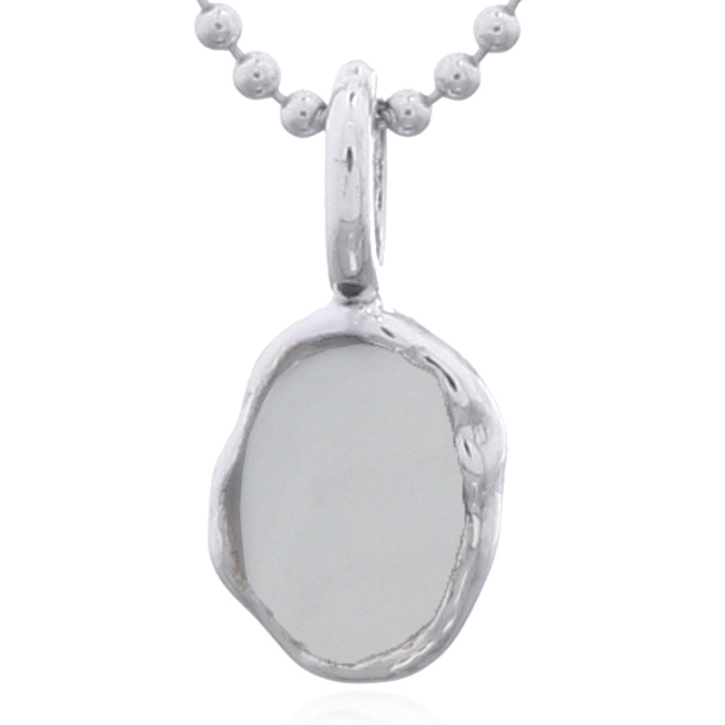 This striking pendant features an irregular oval-shaped Mother of Pearl framed in 925 sterling silver. Its vibrant natural colors and organic design cater to retailers seeking eye-catching, artisan-inspired pieces that add a touch of oceanic elegance to any jewelry collection.
