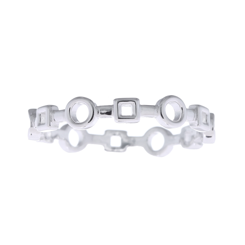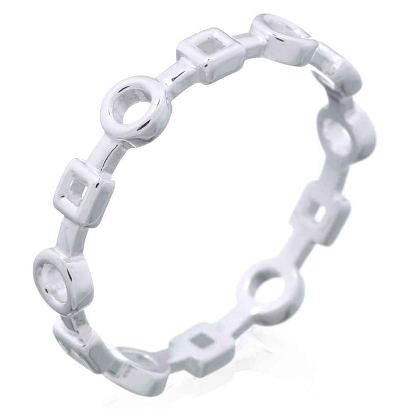 Refresh your inventory with this Modern Geometric Open Circle and Square Row 925 Silver Band Ring, designed for customers who love contemporary style. The band features a striking row of alternating circles and squares, offering a unique, eye-catching look. Ideal for retailers seeking versatile, on-trend pieces that appeal to modern jewelry enthusiasts.