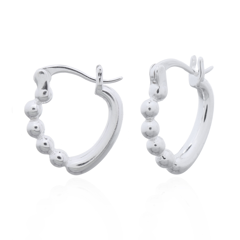 V-shaped silver hoops with half beaded and half smooth textures create a striking and modern look. Their unique design is perfect for fashion-forward customers. Include these hoops in your inventory to attract those seeking stylish and distinctive pieces!
