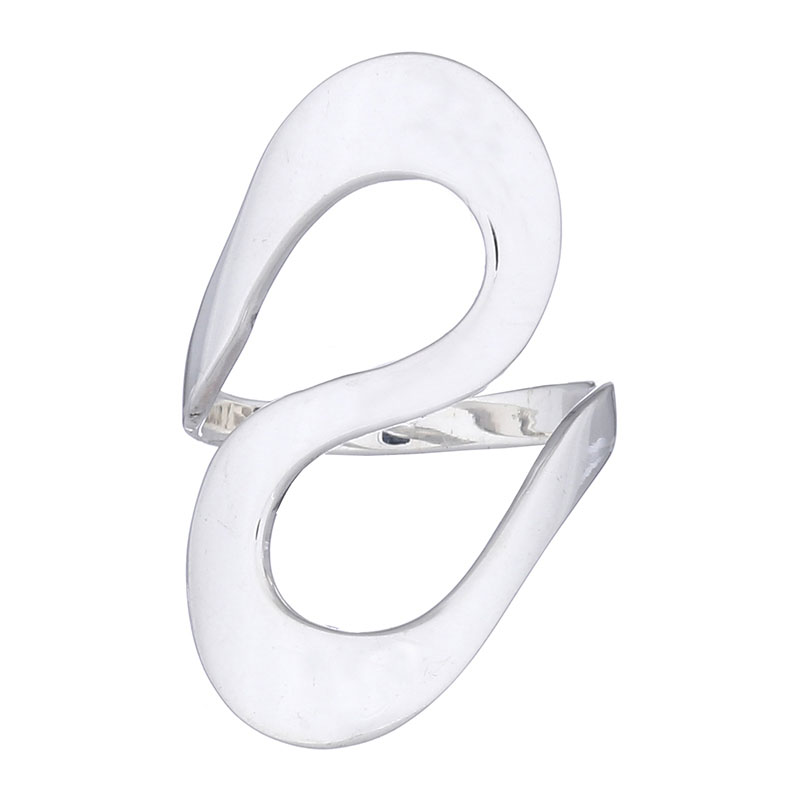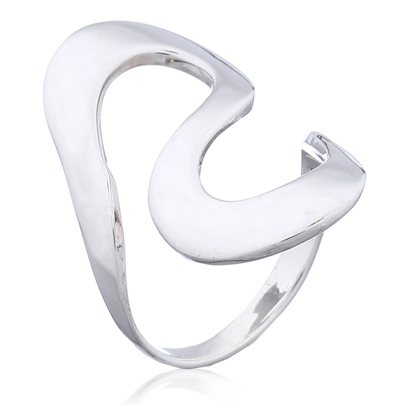 Wavy S shaped shiny 925 Sterling Silver designer ring adds a high fashion flair to the style with its striking flowing line that curls in an S shape vertically across the finger impressive with its 32mm size it creates a superb appearance. Extending into the band the high polished Hallmarked 925 silver creates an irresistible silver shine that each woman loves to slip onto her finger. Soft flowing rounded shapes that bent on the right side sharply curved into the band creating a continuous silver line that wraps delightfully around the finger. Gorgeous!