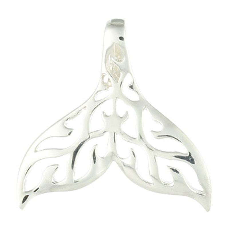 Nice sized whale tail crafted in highly polished sterling silver featuring a pattern of openings that create a sense of movement and speed. The whale tail is seen as a symbol of good luck peed and strength. It also it is said to be used as an amulet for safe passage when traveling by water.