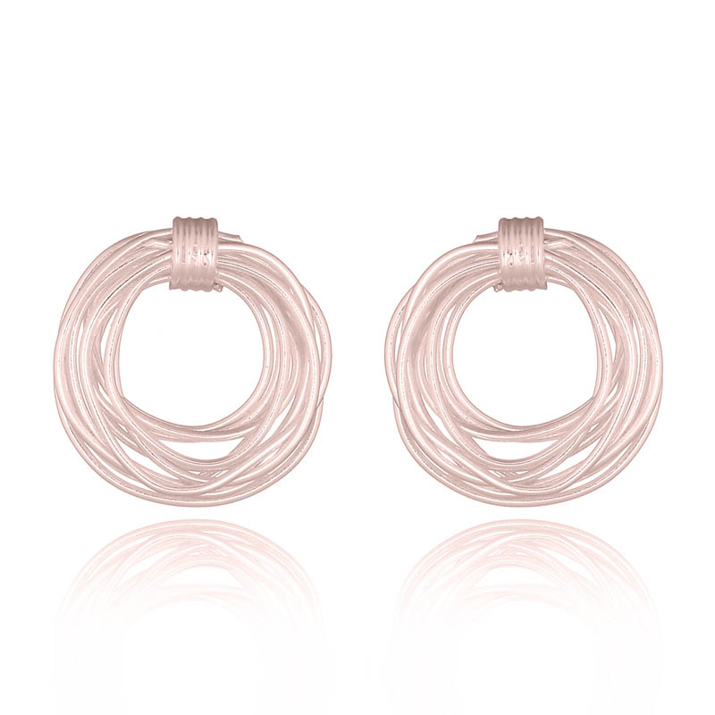 Minimalistic simple stud earring in multiple silver wires plated in rose gold.